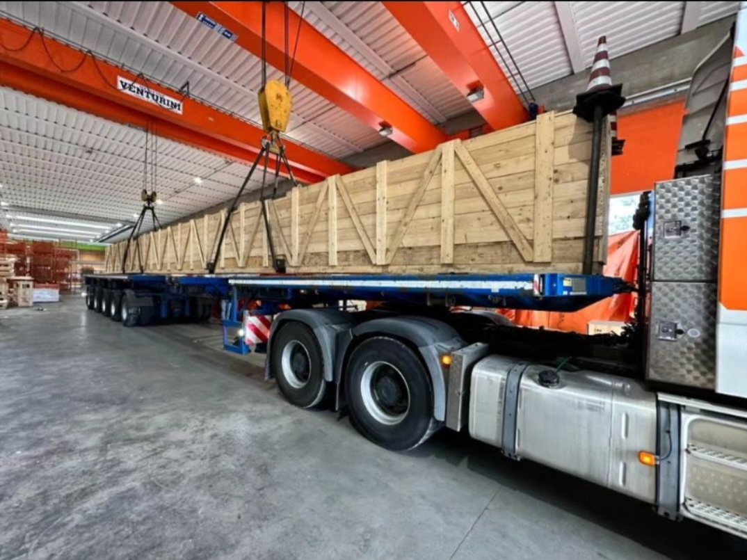 Nella foto imballaggio, carico e spedizione di albero navale da 21 metri e 50 tons di peso